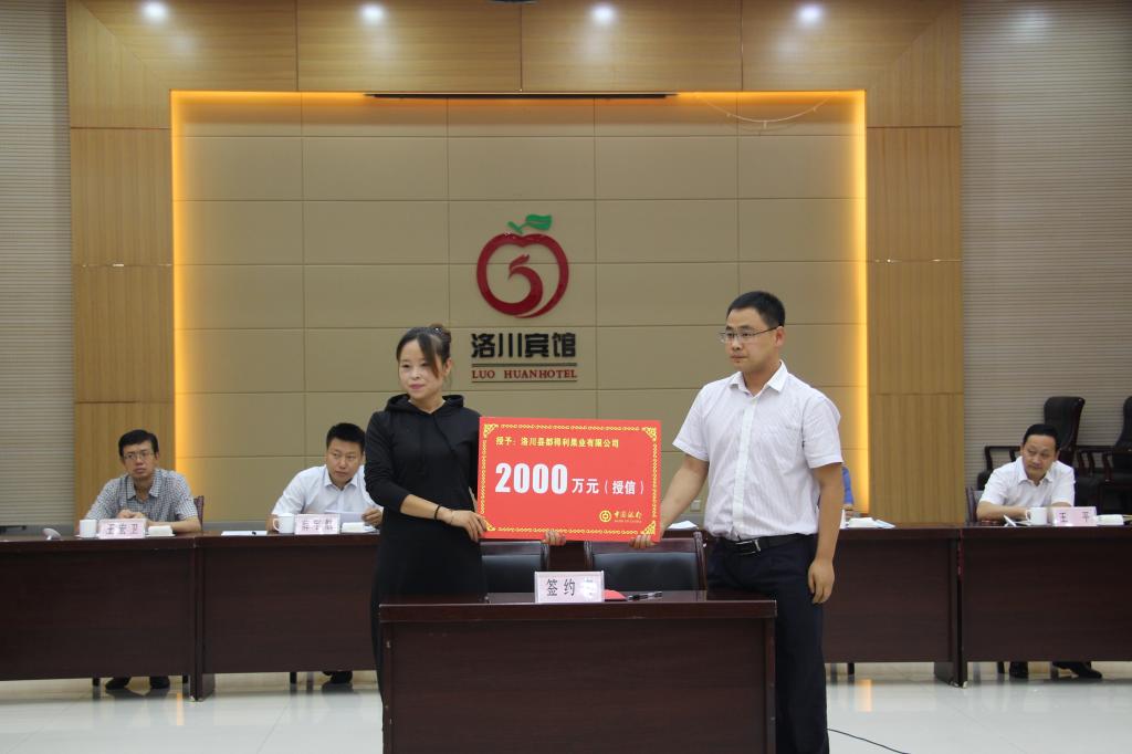 会上,县苹果营销办通报了2017年苹果产销形势;中国人民银行洛川县支行通报了1-7月份全县金融运行情况及2017年各行苹果营销贷款投放计划和具体支持措施;各金融机构和企业代表还就如何支持苹果营销作了表态发言;中国银行洛川县支行、中国工商银行洛川县支行、中国农业银行洛川县支行等七家商业银行与我县都得利果业、顶端果业、中润农业等18家苹果营销企业签订了苹果营销贷款合同及授信协议共计1.28亿元。